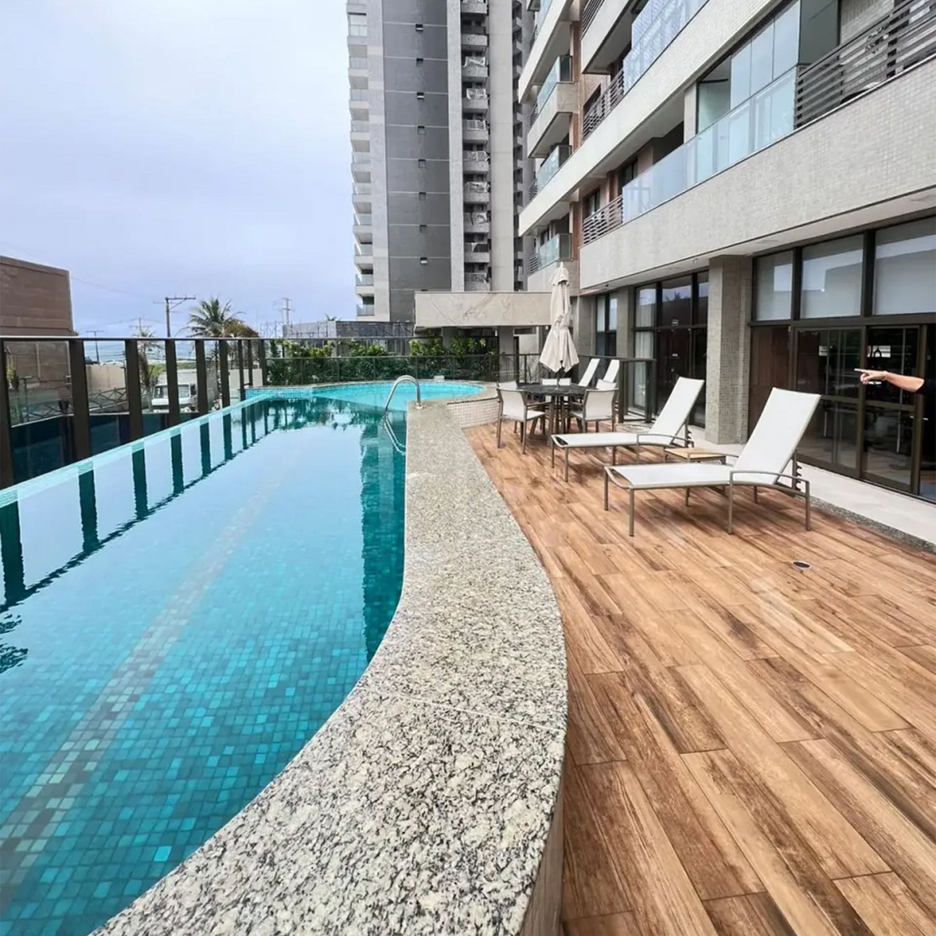 Aqui, sua estadia vai muito além do apartamento: aproveite a piscina com borda infinita e vista incrível, deck molhado, raia para natação e piscina infantil. Para momentos de lazer e descontração, há ainda salão de jogos e coworking. Se você gosta de manter a rotina ativa, conte com a academia equipada, bicicletário e guarderia de pranchas.